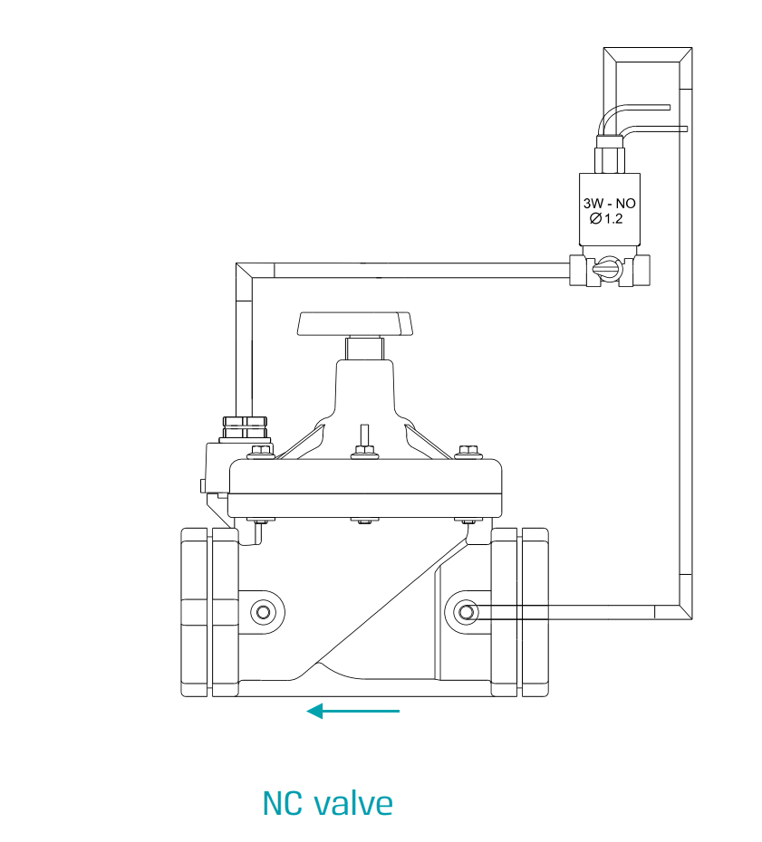 3 Way External Solenoid Pilot Control Irrigation Valve NC | G75-SE Plumbing Diagram