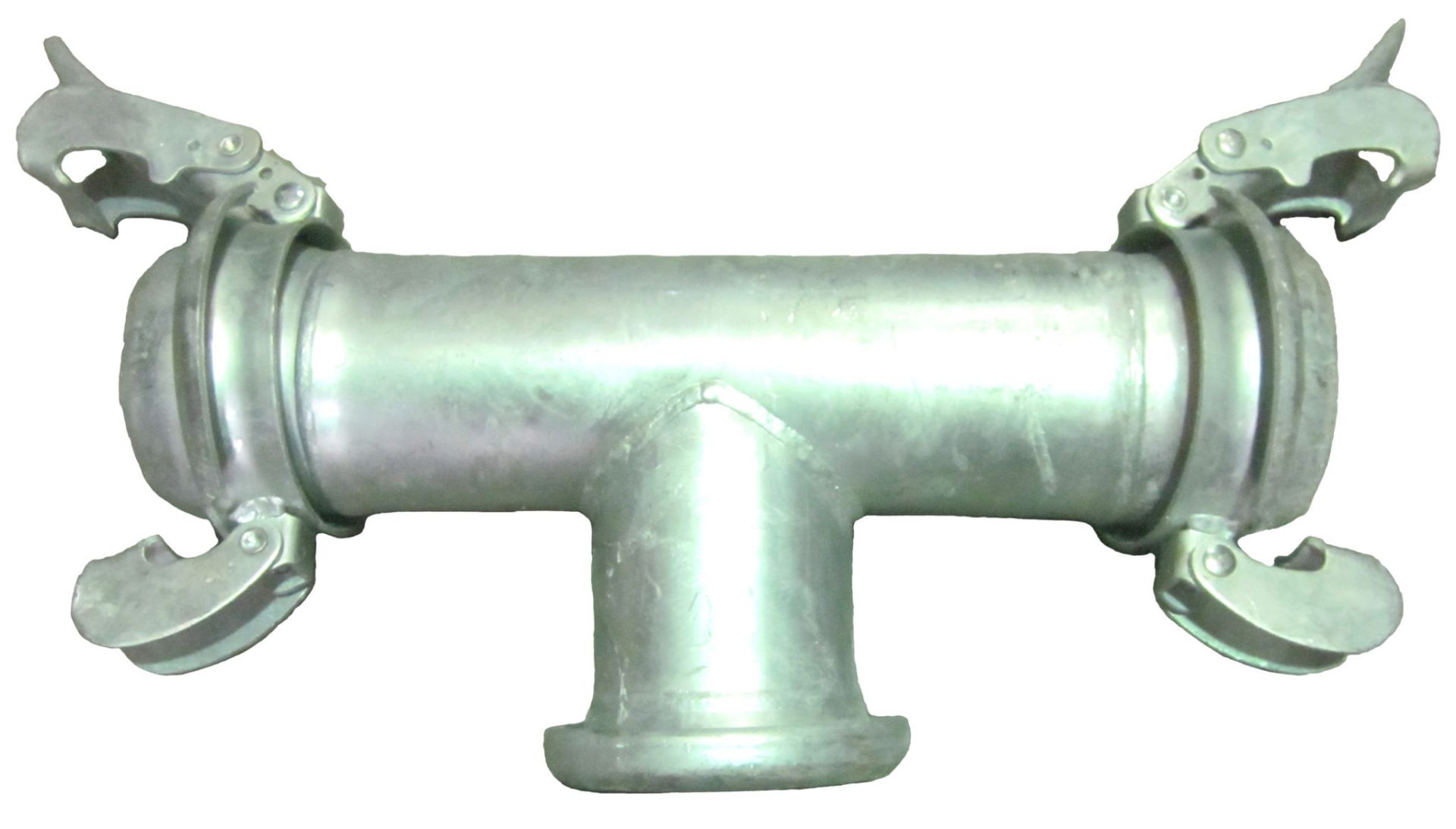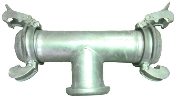 T-piece Bauer couplings are used to split the flow of fluid in two 90° directions. They have one central female Bauer and two male Bauer couplings on either side.