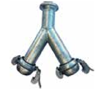 Y-piece Bauer couplings are used to split the flow of fluid in two 90° directions. They have one central female Bauer and two male Bauer couplings on either side.