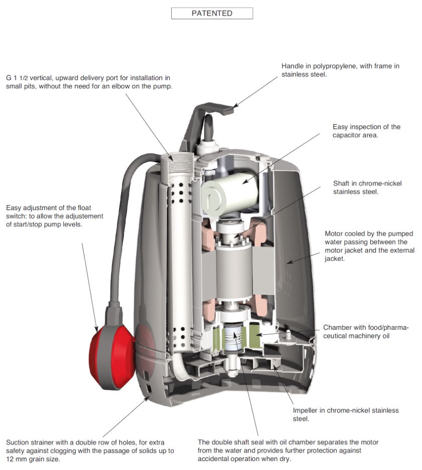 Premium quality high volume submersible drainage pump in stainless steel with open impeller