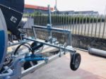 Width adjustable sprinkler trolley with 3 rubber wheels.