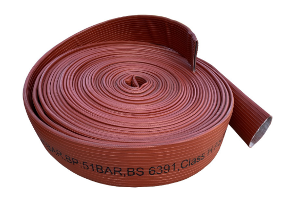 Type 3 fire hose, the robust protective cover can withstand heavy brigade use of being dragged across rough ground.