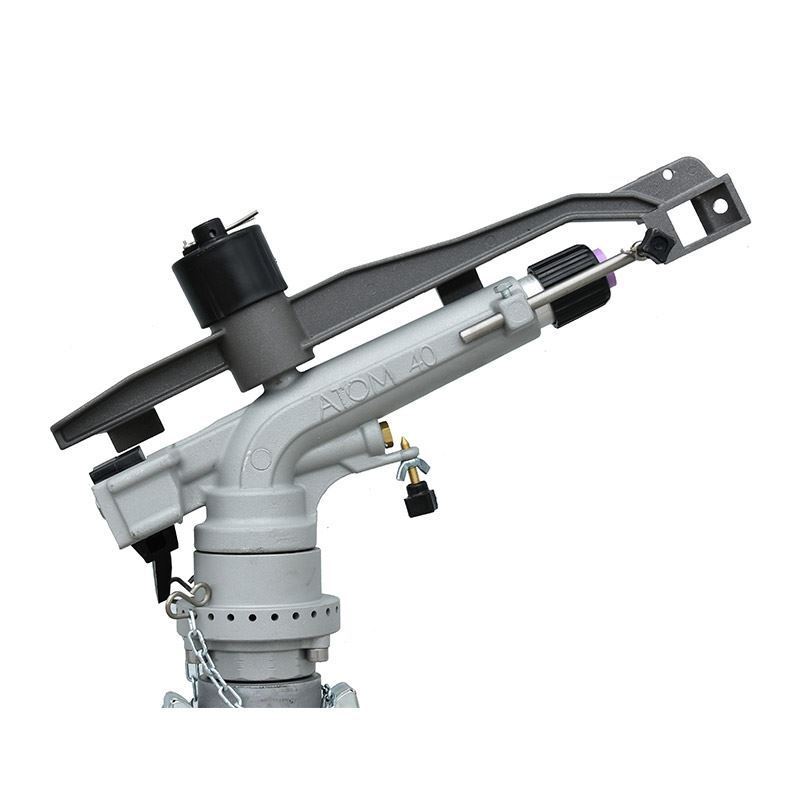 It is excellent for agricultural, mining, dust control, stationary and portable systems. This model has aluminium main body with rotating mechanism of lower body made of brass, Teflon and stainless steel. It is equipped with specially designed and adjustable breaker. Lower body is specially designed for sandy water. Also its specially designed breaker has licence certificate. It has a second nozzle outlet that can be plugged at low pressure.