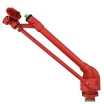 Special design, gear drive dust control and suppression sprinkler allows irrigation and humidification of large lands with minimum water consumption.