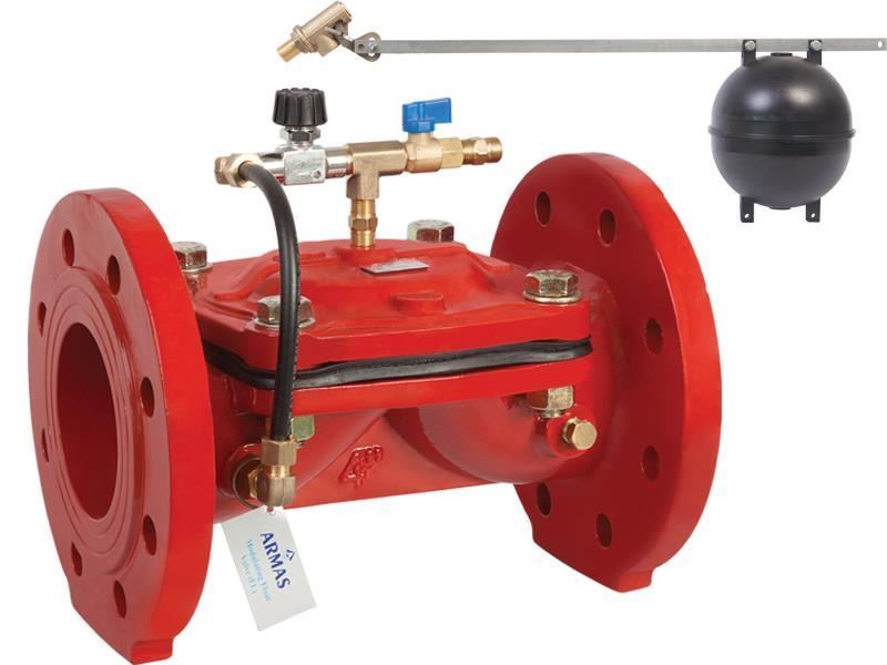 Armas Float Level Control Valve is the hydraulic control valve designed to control water level in reservoirs and tanks continuously. Main valve is controlled by 2-way modulating type float pilot valve manually. Main valve mounted on reservoir and tank upstream is closed as fully sealed without causing surge when water level reaches to maximum level. Valve opening/closing speed may be adjusted in set value. It may be used in the system by mounting horizontal or vertical positions.