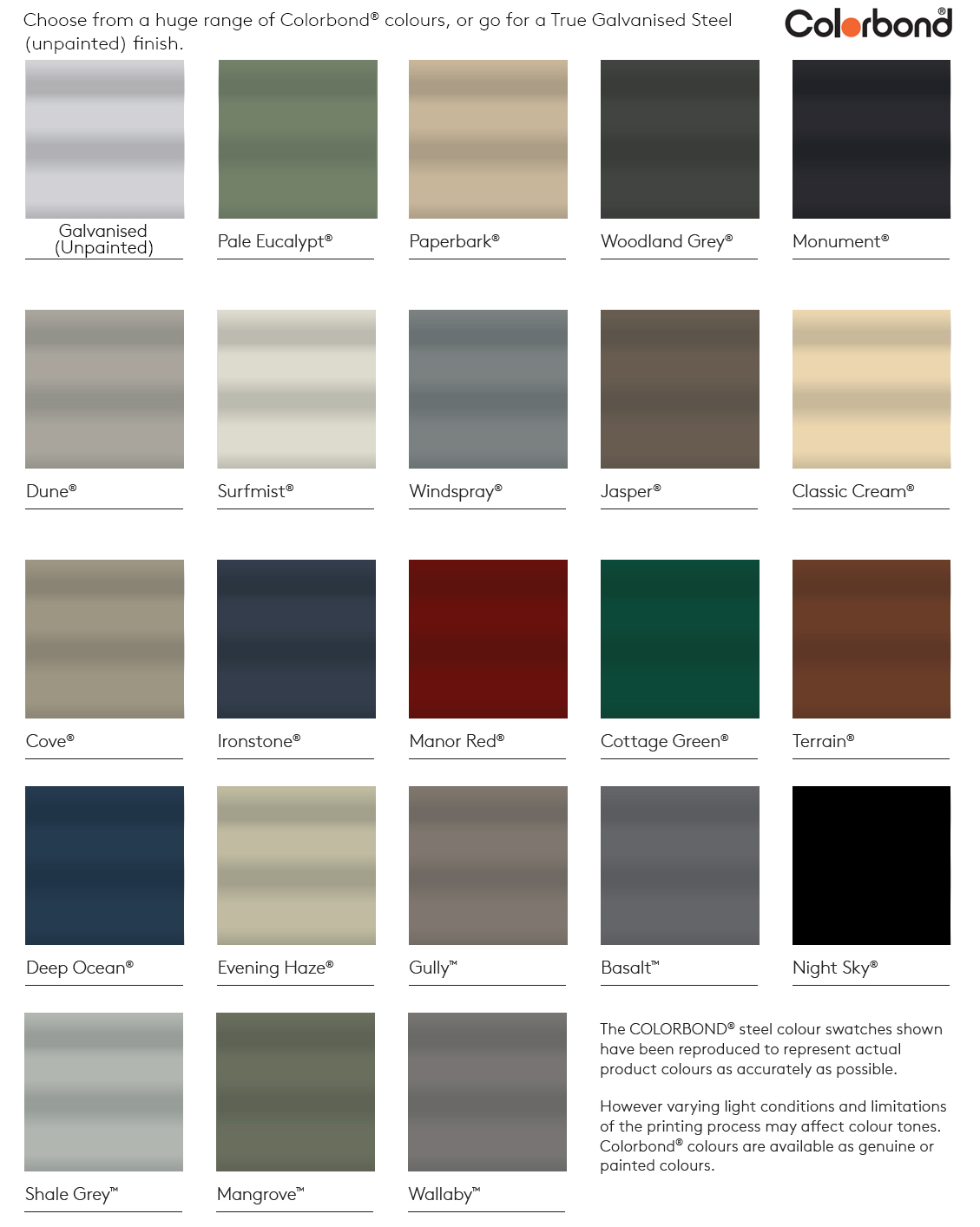 Colorbond® or Z450 grade material
