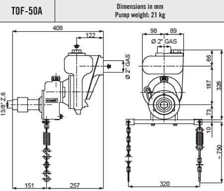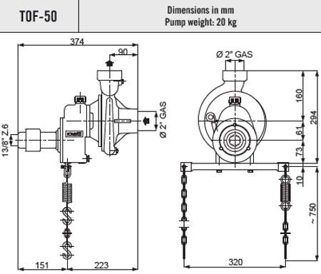 Overgear driven by cardan shaft of PTO (TOF-50A) or direct connection (TOF-50). Axial inlet and scroll outlet.