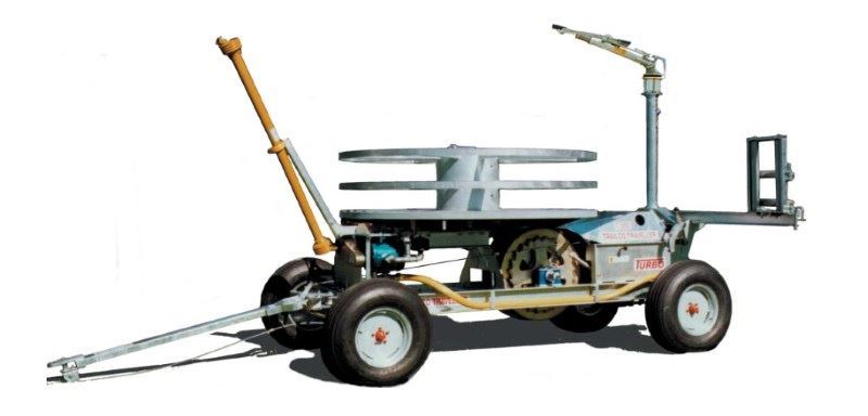 Latest Technology, heavy duty, easy to use, efficient, large spray width, turbine drive, soft hose travelling irrigator with 3.5" of 200 m drag hose.