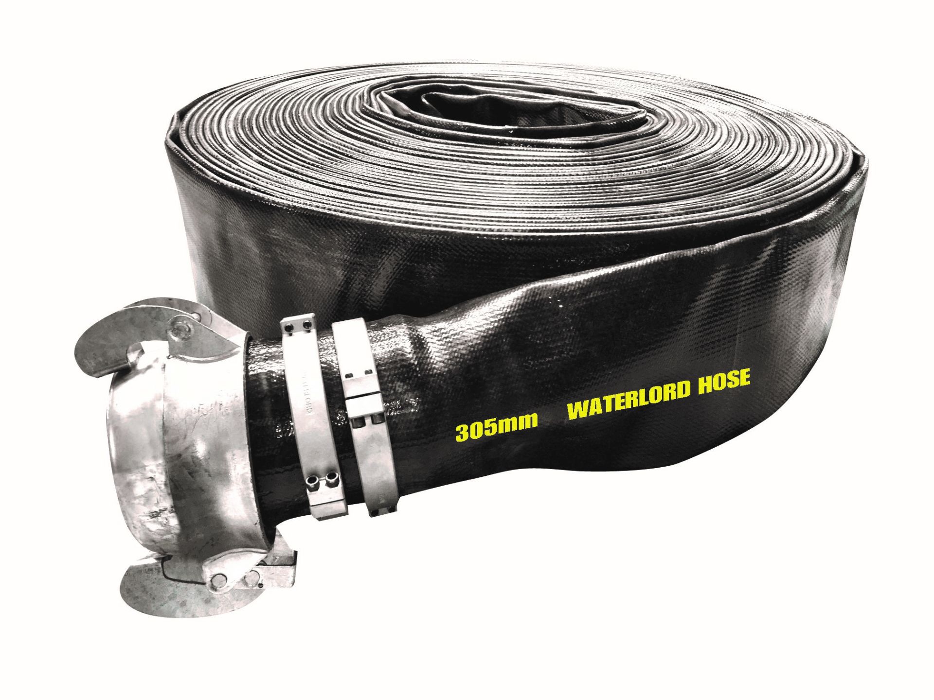 Waterlord® is manufactured by weaving a textile reinforcement of high-tensile polyester, then encasing and lining it with abrasion-resistant polyurethane. The tough cover protects the hose against damage from most rocks and soils; extra protection is required if used on a rough terrain.